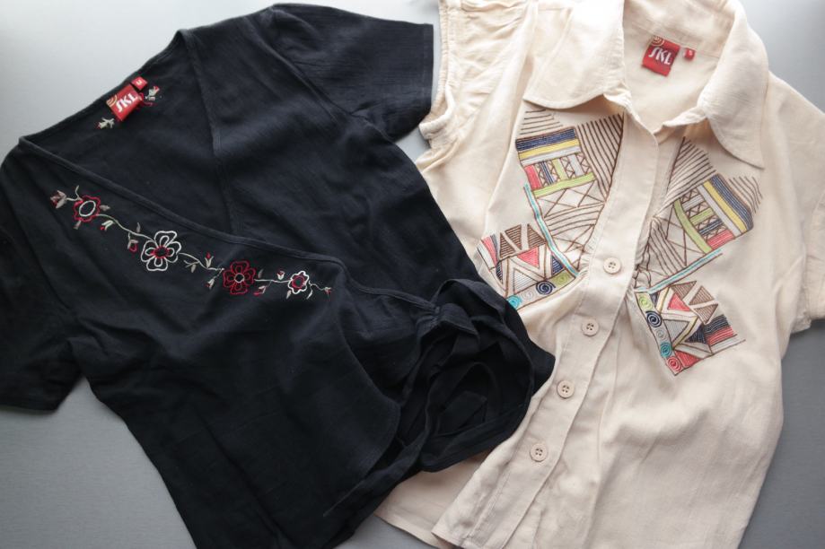 Ljetni lot, bež košulja kratkih rukava i crni topić kratkih rukava s kopčanjem na preklop. Košulja je veličina S, topić je veličina M ali definitivno odgovara veličini S, oboje s vezenim detaljima, par puta nošeno i odlično očuvano, bez oštećenja.