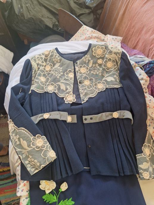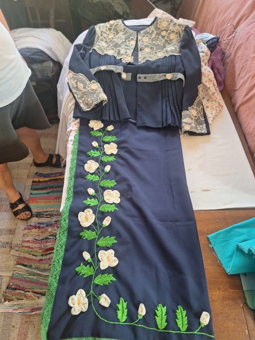 Pregač rađen sa svilom,pravite ružice sa bluzom poluštofanom stara nošnja u izvardenom stanju,cijena po dogovoru