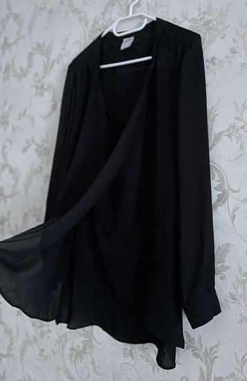 Deklarirano L, za 42 i 44, mjere: dužina 70/80 cm, ramena 42 cm, prsa i struk 52 cm.