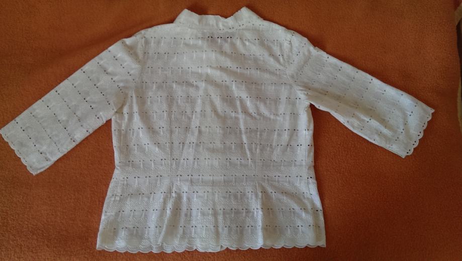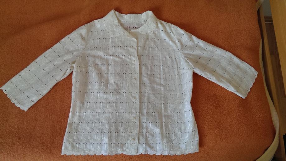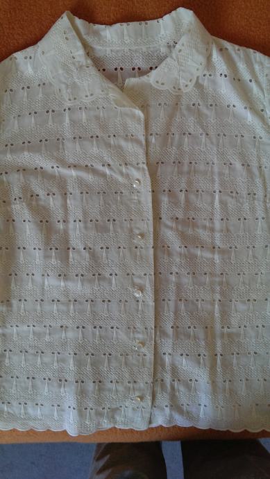 Zanimljiva vintage bluza, tj košulja, od čistog pamuka, lagano se prozire i ima zanimljiv rupičasti uzorak, 3/4 rukavi, iza je strukirana, veličina L, 42.