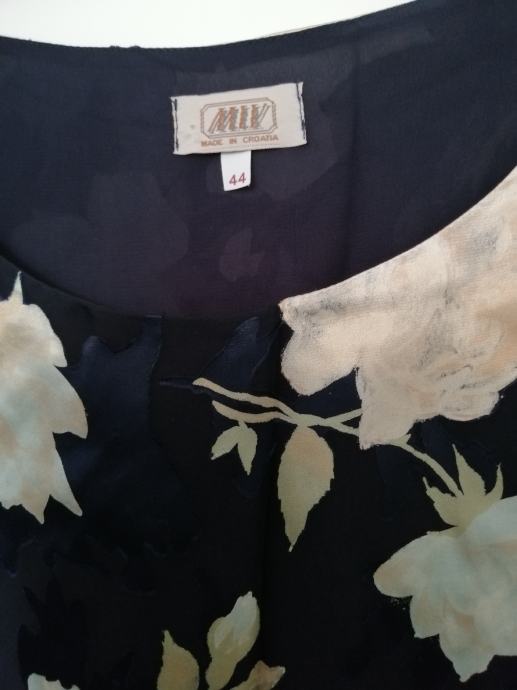 Elegantna bluza, crna sa zlatnim cvjetovima, mješavina svile i viskoze, podstavljena, lagana, ugodna i očuvana.