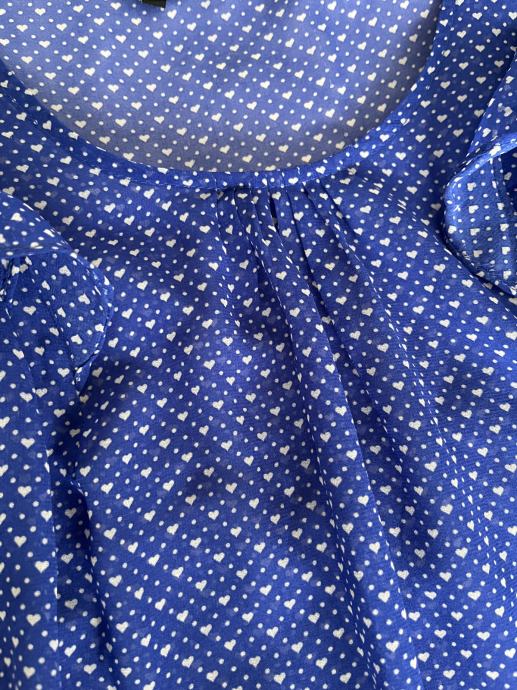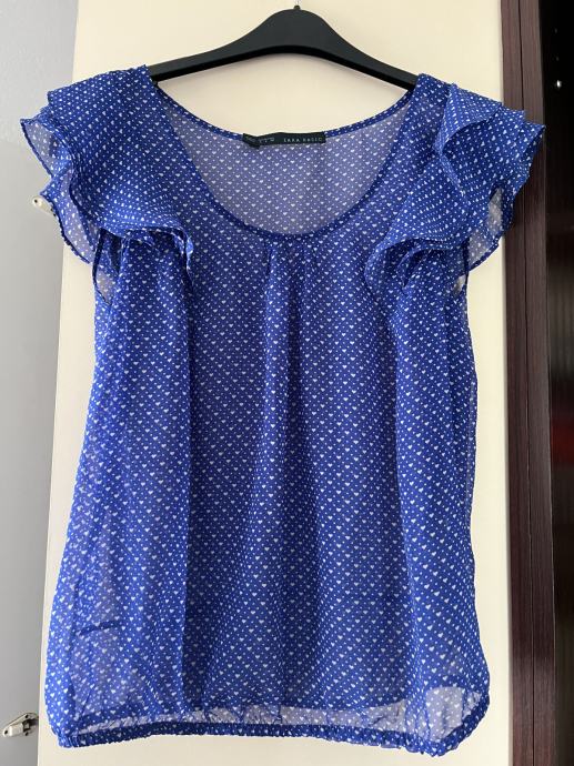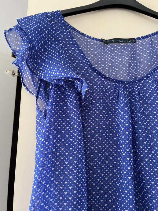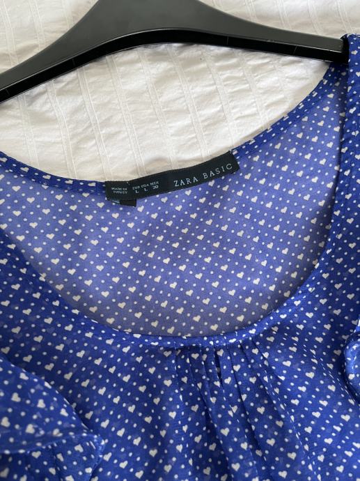 Zara Basic bluza, na bijele točkice i srce, vrlo malo nošena, potpuno očuvana. Na volančiće, lagana, veličina S, iako na njoj piše L.