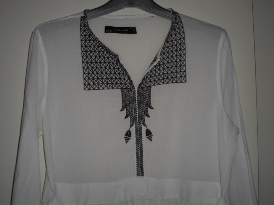 Zara snježno bijela boho bluza od mekanog gazastog materijala. Sprijeda crni uzorak koji je lijepo podigne. Dugačke trakice za vezanje sprijeda ili straga. Lepršavog kroja, super paše na sve. Vel.XL