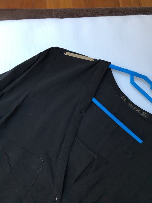 original Zara crna bluza V izrez s metalnim zlatnim ukrasima na ramenima