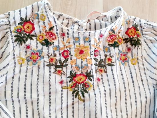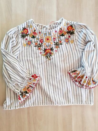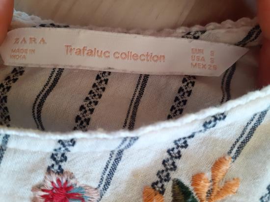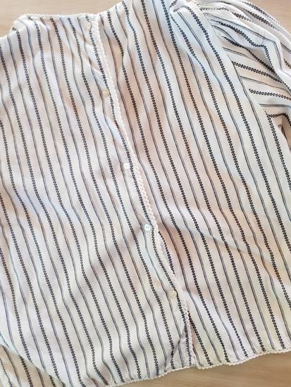 Bijela prugasta košulja Zara s vezom br. S, kopčanje gumbovima od sedefa straga.