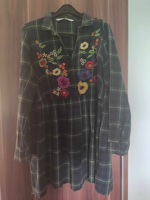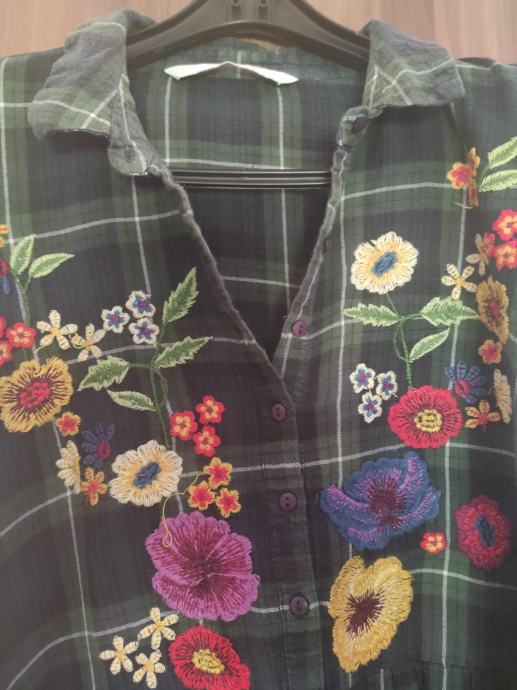 Zeleno crna karirana košulja sa efektnim vezom kao nova, vel M