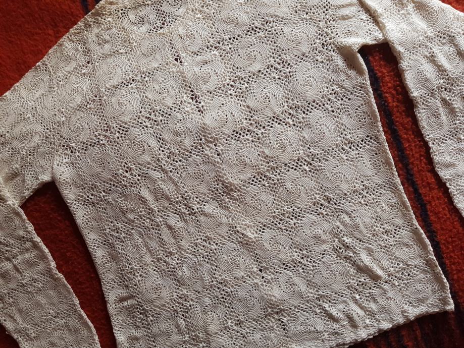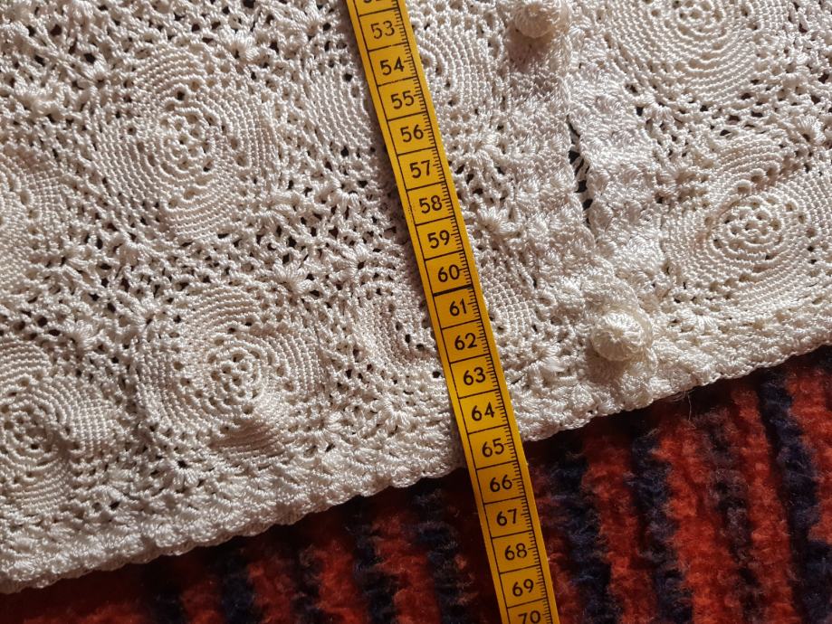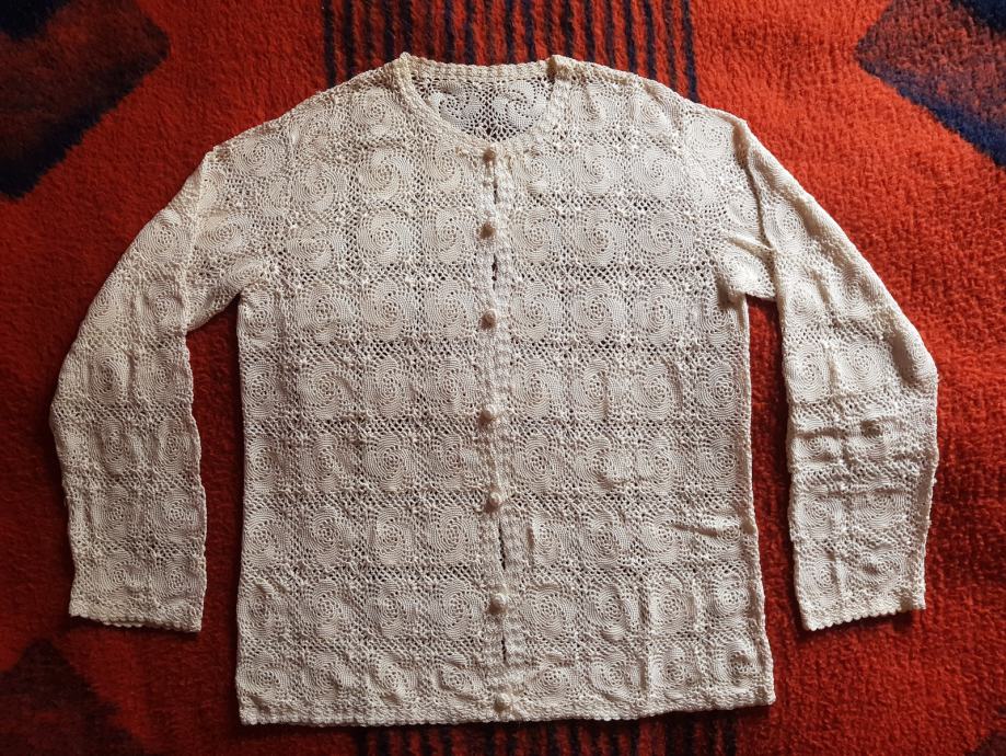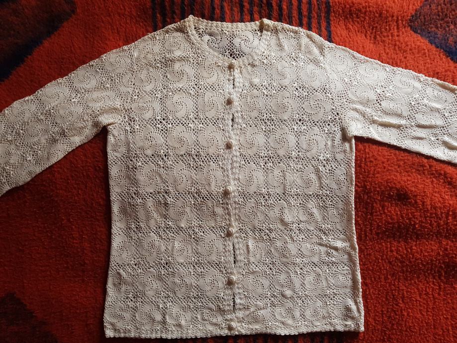 Odjevni predmet raritetne vrijednosti - ručni tkano. Znači- ručni rad. Sve ostalo je na fotografijama uz oglas koje neposredno prikazuju predmet prodaje onakav kakav je. Lokacija Zagreb istok Dubec blizina okretišta tramvaja. Može i poštom. Oglas je za poznavatelje i kolekcionare.