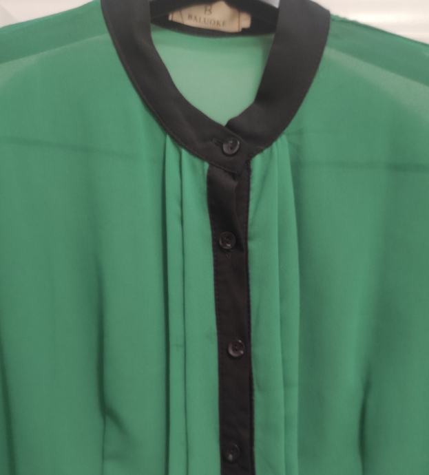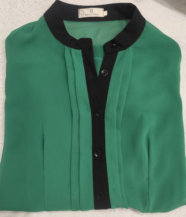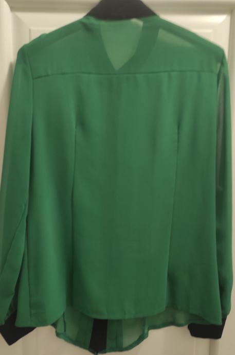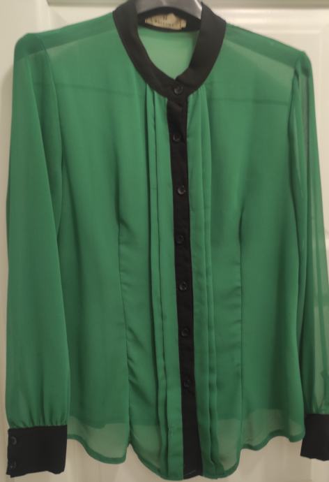 Prodajem žensku košulju, zelene boje, veličina L, tanak i proziran materijal, nošena do nekoliko puta, kao nova.