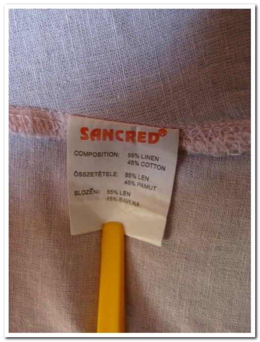 Lan 55%; pamuk 45%. Ima bočne proreze cca 5cm.
