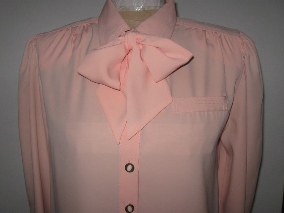 4. svilena bluza, boja breskve, može se nositi s mašnom ili bez, nikad nošena, vel 40, proizvod Unikon, cijena 5 eura