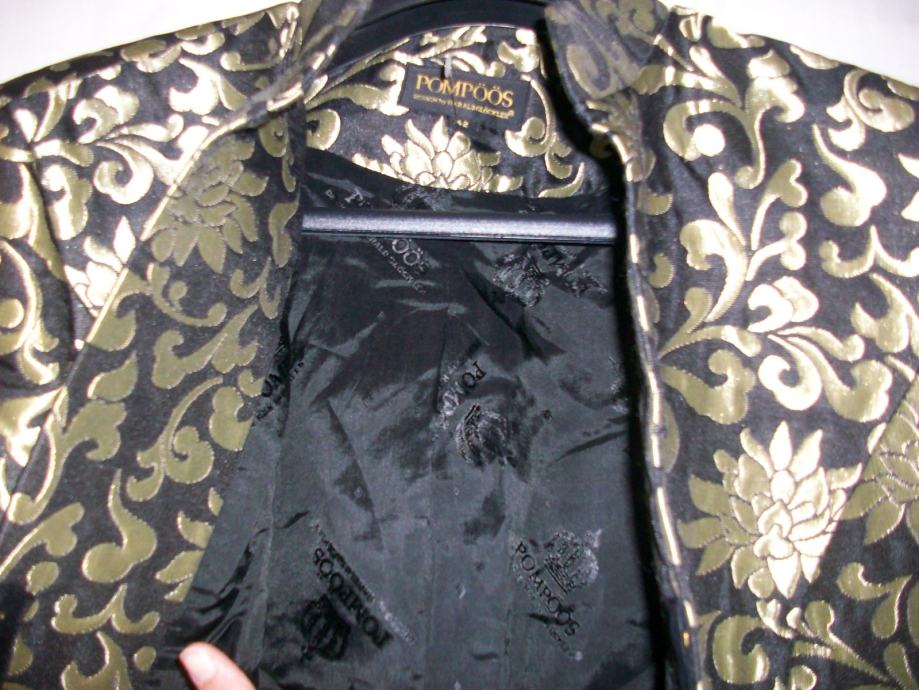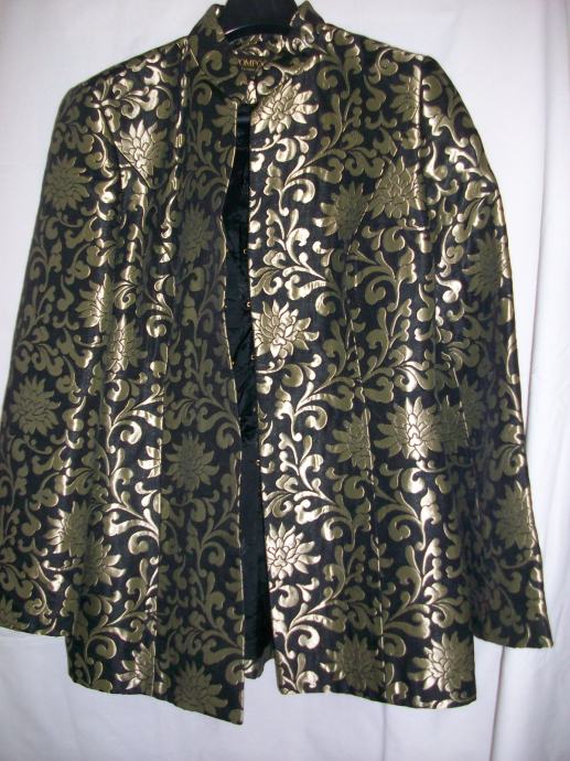 Prodajem crno zlatni ženski sako marke POMPOOS dizajniran od HARALD Glocklern , prelijepi ,dužina rukava 62 sa vanjske strane,dužina sakoa 73, savršeno sašiven br 38-40