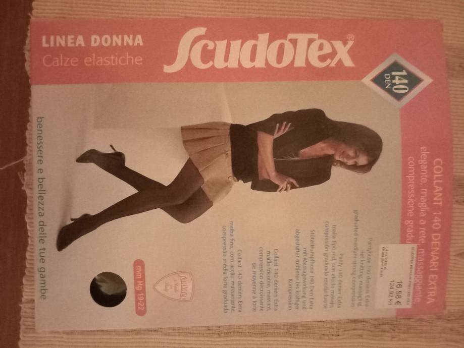 Crna boja. 77% poliamidno vlakno i 23 % elastansko vlakno