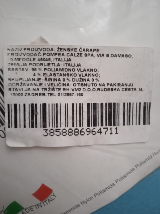Sastav: 88% poliamidno vlakno, 4 % elastin.