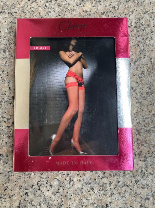 PRODAJEM NOVE elegantne crvene samostojeće mrežaste čarape sa silikonskom čipkastom trakicom.
