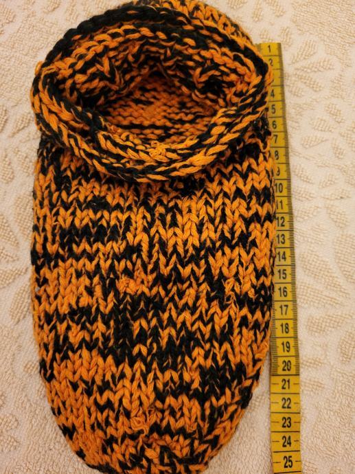 Prodajem ručno izrađene tople i pletene čarape koje se mogu nositi po doma kao i papuče. Rastezljive su, ugodne, tople i praktične. Veličina je prilagodljiva od br. 34- 40. Cijena po paru je 4 eur. Može biti i za pokon.Dužina gazišta je od 23 (crno/bijele čarape) , a ostale su 25cm što znači da je mogu nositi od br. 36-40. čarape mogu nositi i muški i ženske.