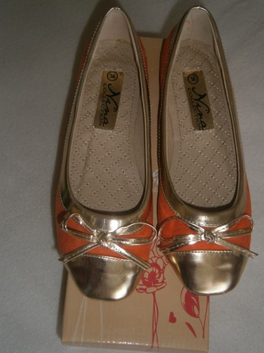 2+1 GRATIS! POTPUNO NOVE NARANČASTO-ZLATNE BALERINKE, BR. 36 I BR.37