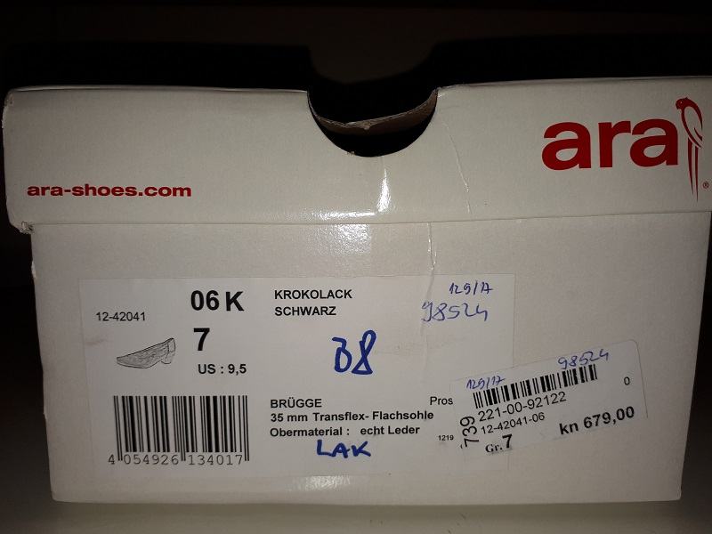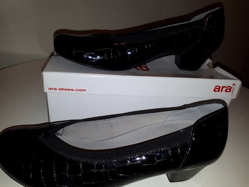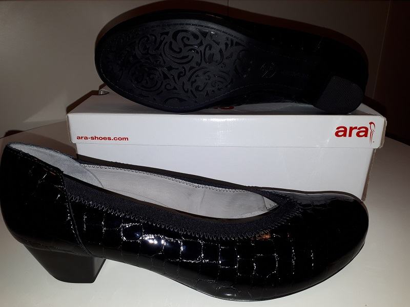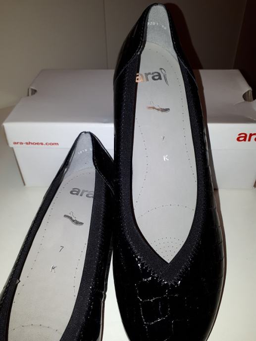 Ženske ARA cipele, crne, lakirane, kroko uzorak, kožne, br.41, niska peta