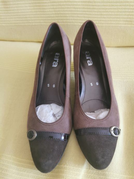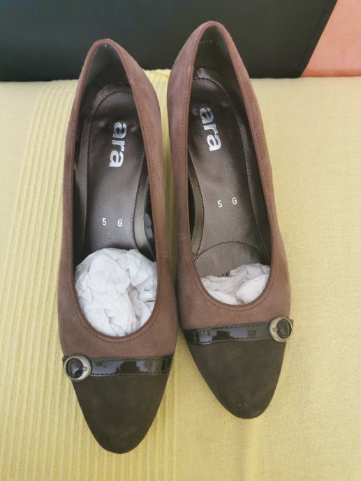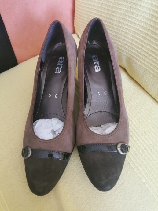 Ara, cipele, preudobne, imaju jastučiće na stopalu, jednom doslovno nošene. Veličina 5, tabanica 24, 5 cm. Peta stabilna, 5 cm visine. Primopredaja Karlovac, ali može i slanje poštom ili Tiskom.