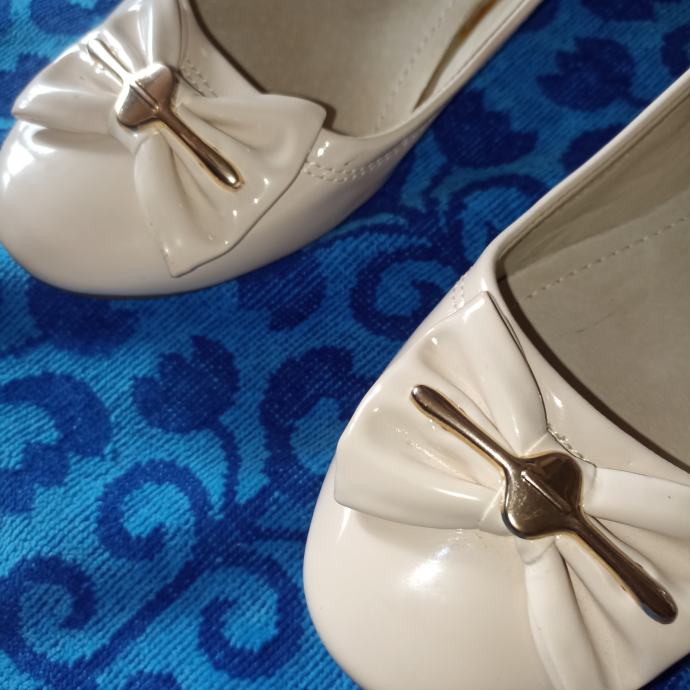 - bež lakirane s mašnicom i zlatnim detaljem (mala nevidljiva oštećenja) 5€