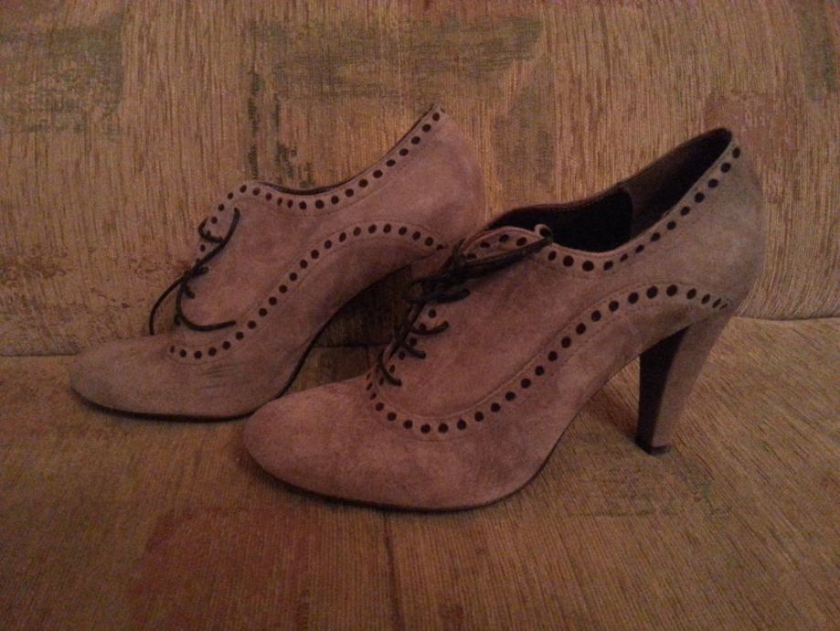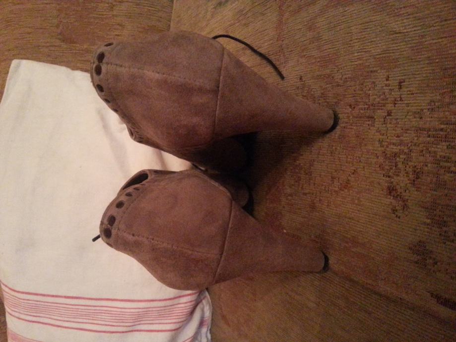 Nikad nošene, još u originalnoj kutiji. Sive boje, potpetica 10 cm, na vezanje.