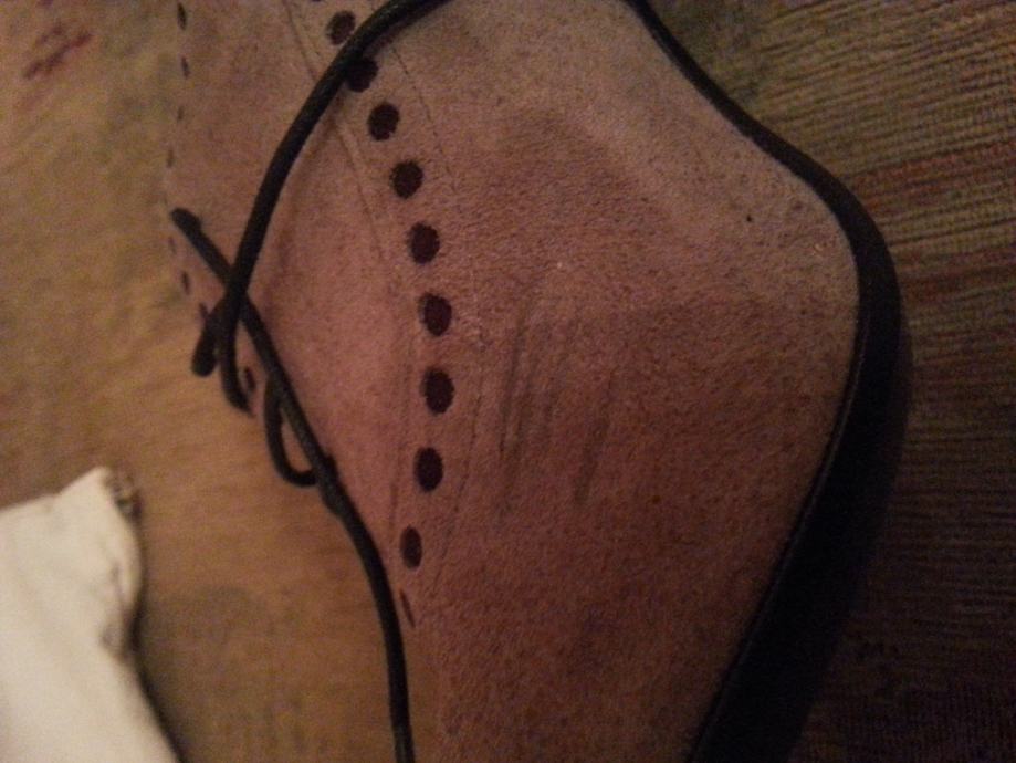 Na desnoj cipeli s unutrasnje strane tri crte(ima slika),valjda je netko zagrebao kad ih je isprobavao.