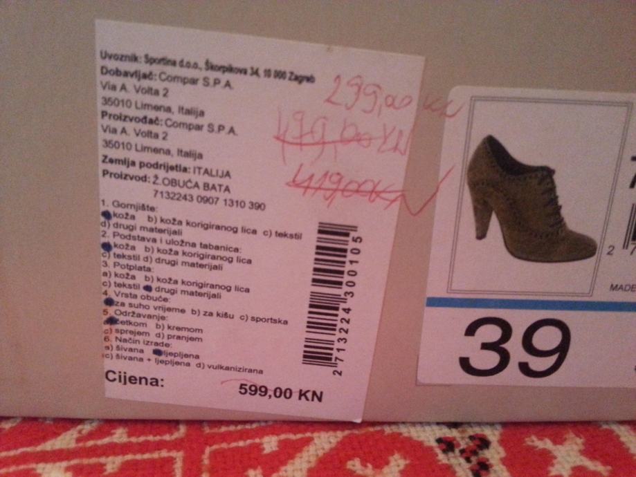 Prodajem nove Bata cipele od brušene kože broj 38, piše 39 ali meni koja inače nosim 39 su premale.