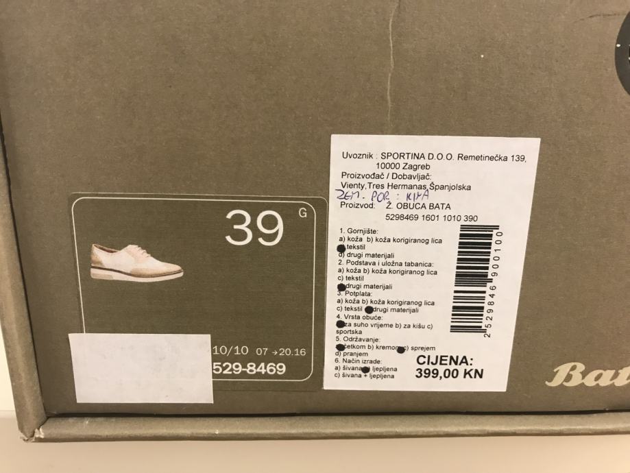 Bata cipele oksfordice 39