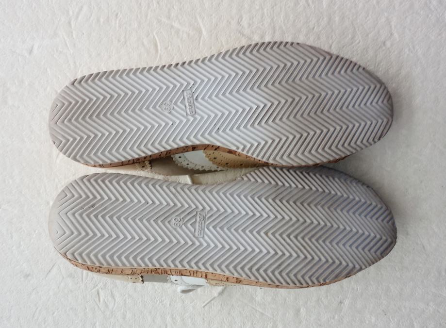 BATA oksfordice veličine 39 (gaziste 25,5 cm), realno 38/39. Gornjište izrađeno od prirodne kože, u kombinaciji glatke i lakirane. Boje su: bijela i metalik srebrna, a lakirani dio je bež. Džonovi dijelom imitacija pluta. Obuvene jednom, zaista NOVE.