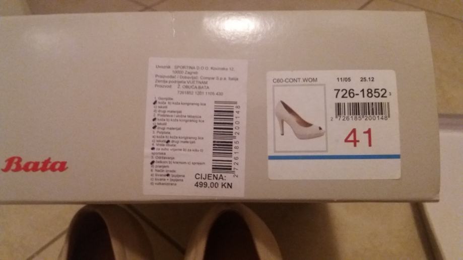 Salonke, Bata, broj 41, bez boja, duzina gazista do vrha prstiju 25 cm. Visina pete 10.5 cm.