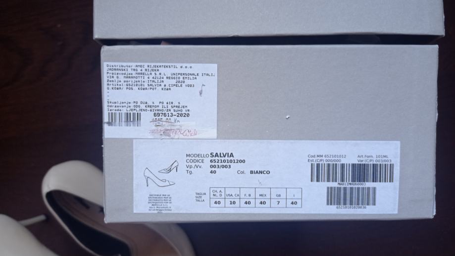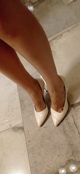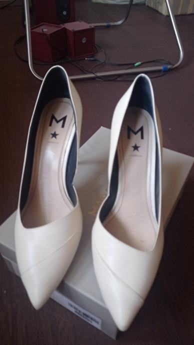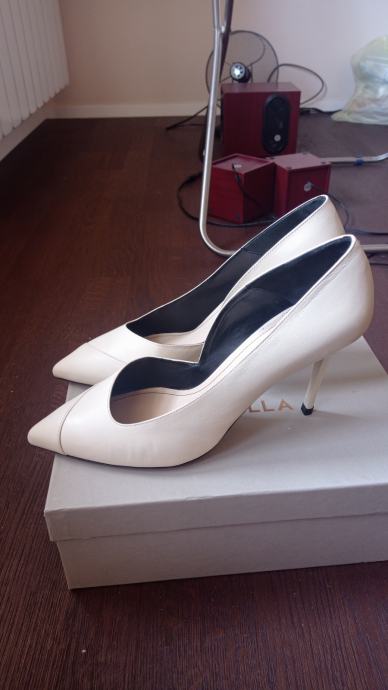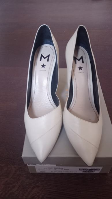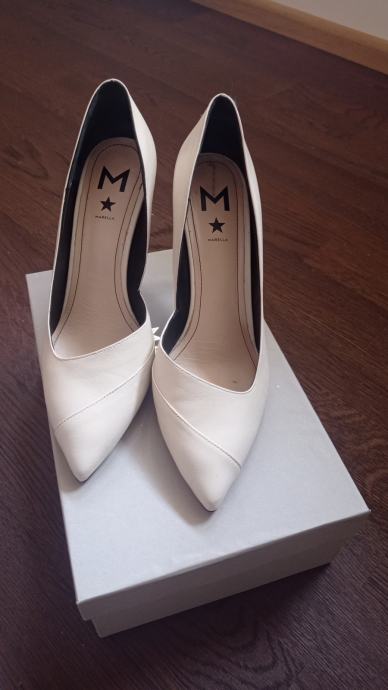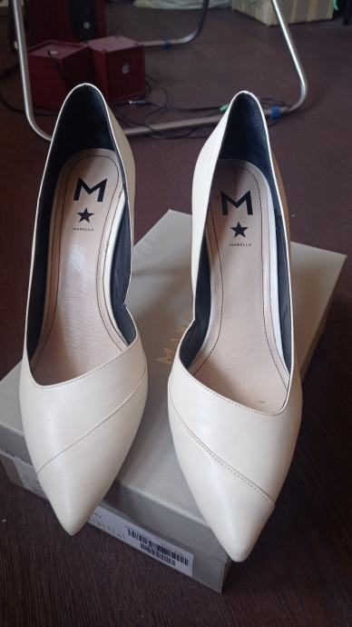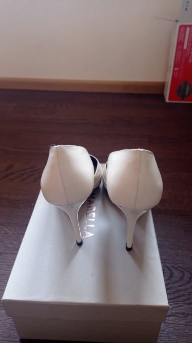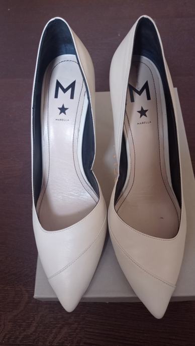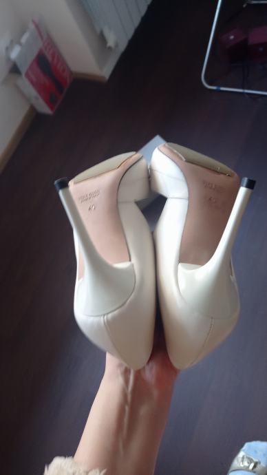 Prodajem predivne nove bijele/krem kožne štikle original Marella, broj 40. Visina peta je 9.5/10 cm. Dolaze s original kutijom. Vrlo kvalitetna koža i cipela, sprijeda koso rezane, udobne na nozi. Podstavljeni džonovi kod postolara bez rubova da se ne vide, pošto su bijele cipele. Puna cijena je bila 220 eura, plaćene 120 eura, prodajem za 60 eura. Savršeno stoje, 10/10 vrhunska štikla.