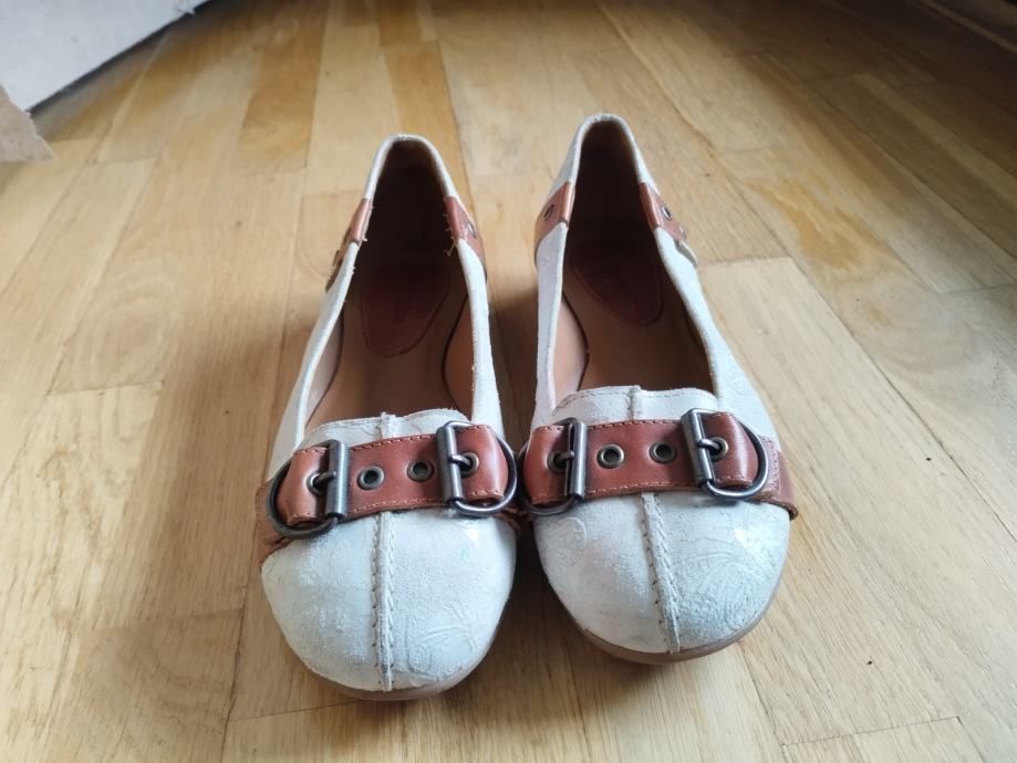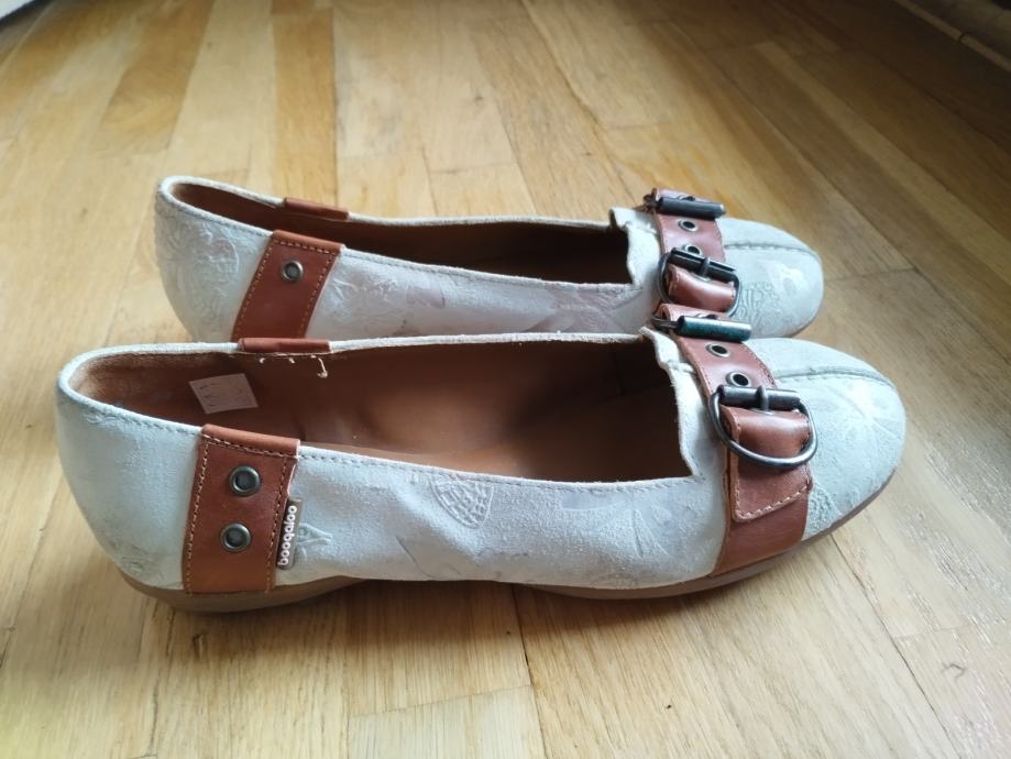 Prodajem kožne ženske cipele Booqaloo br.36 bijele sa smeđim trakom. Nošene jednom.Iznimno udobne i kao nove.