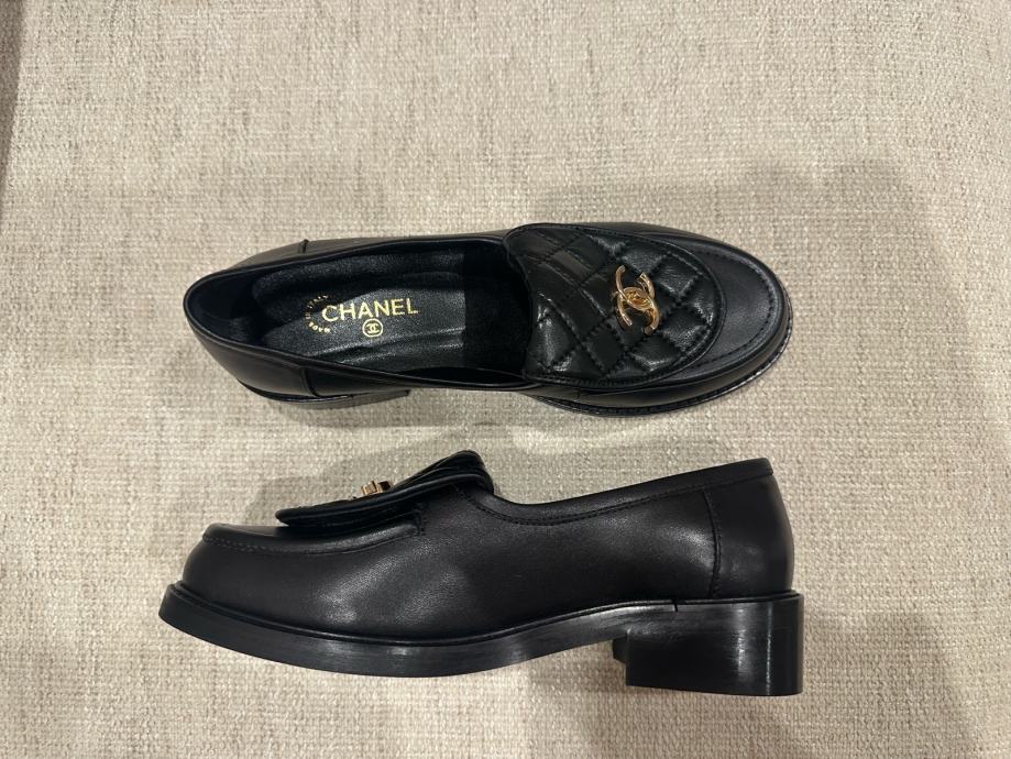 Prodajem Chanel cipele u crnoj boji, veličina 38. Riječ je o loafer modelu s karakterističnim prešivanim detaljima i zlatnim CC logom. Cipele su ravne, bez pete, s malo podebljim đonom što ih čini udobnima za svakodnevno nošenje. Iznutra i izvana imaju Chanel oznake. Dolaze s vrećicom za pohranu.