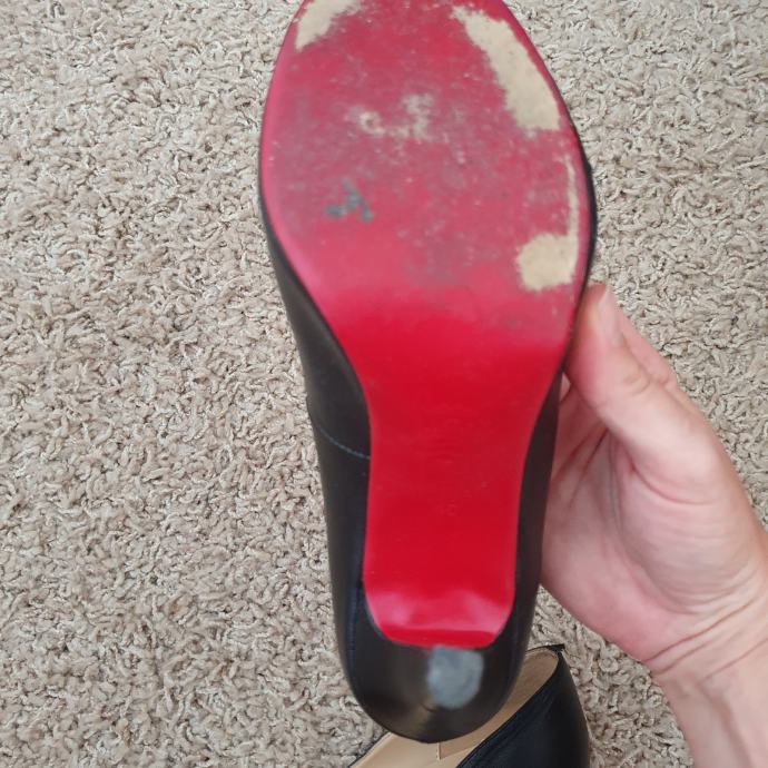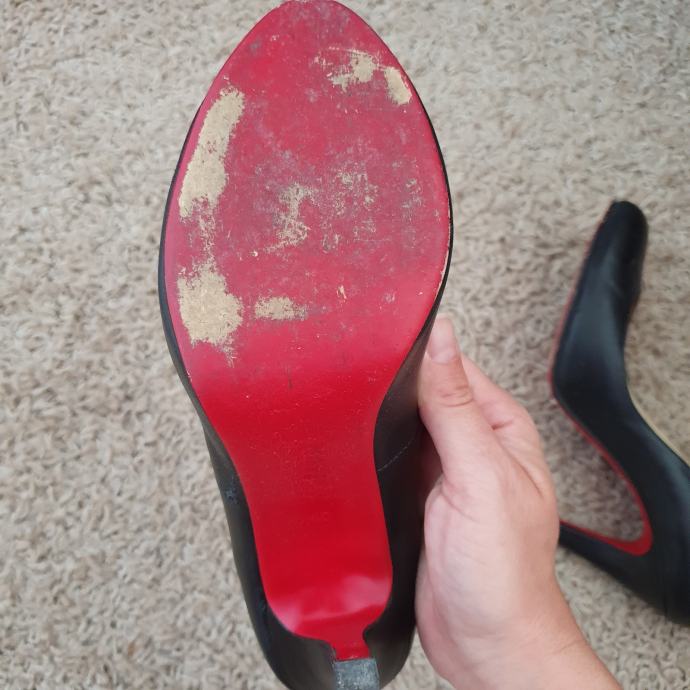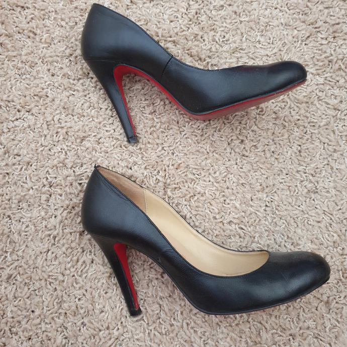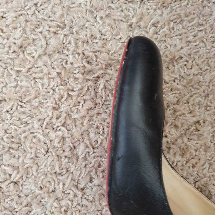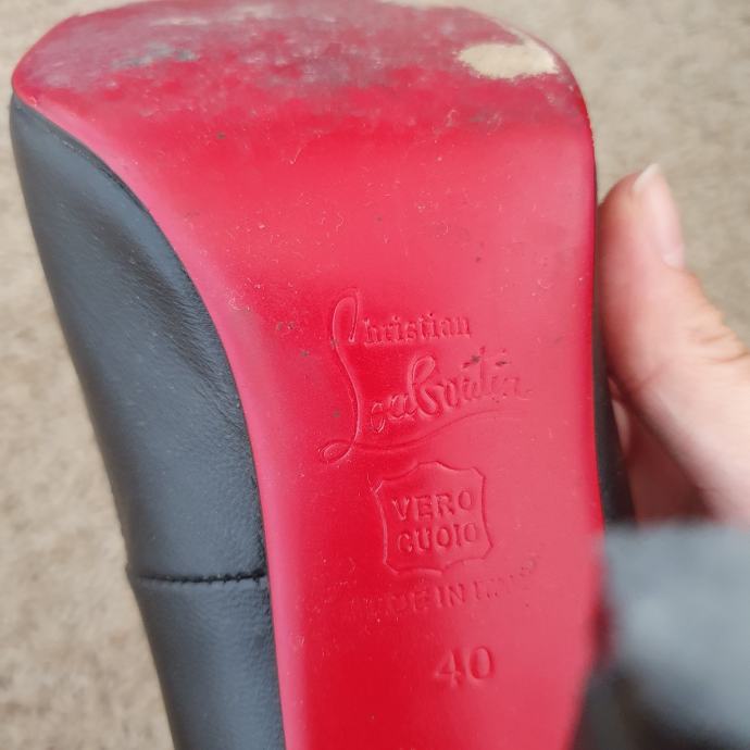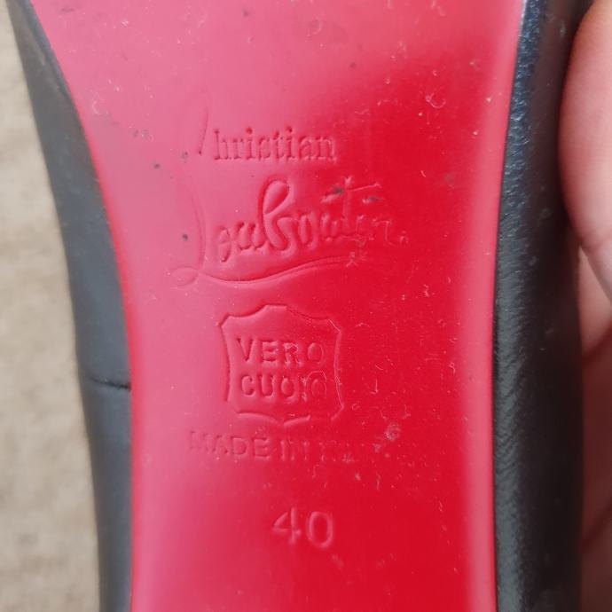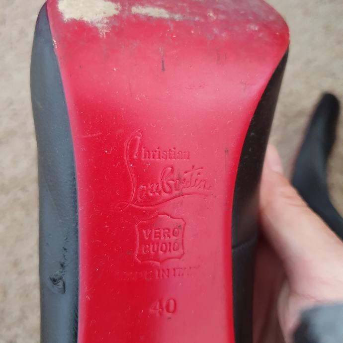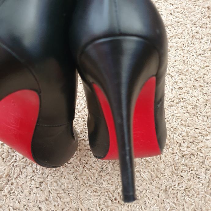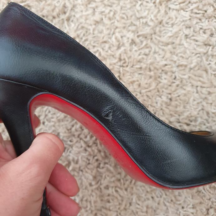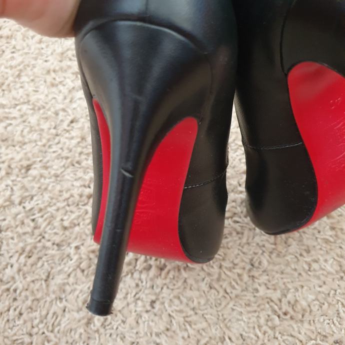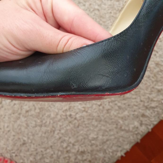 Christian Louboutin crne štikle veličina 40. Kupljene u Nicholas store dućanu. Imaju sitna oštećenja, sve je fotografirano i samo je zato cijena povoljnija, sve ostalo je u super stanju. Kutiju i dustbagove više nemam. Duljina unutarnjeg gazišta 26 cm, visina pete 10.5 cm. Ovo je model koji nije neudoban bez obzira na visinu štikle.