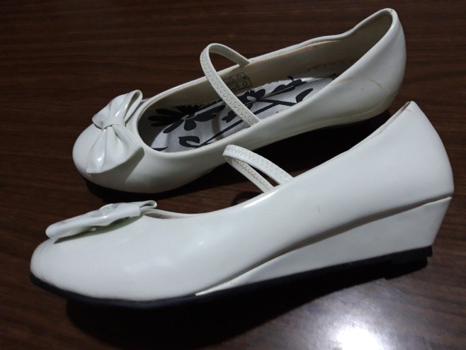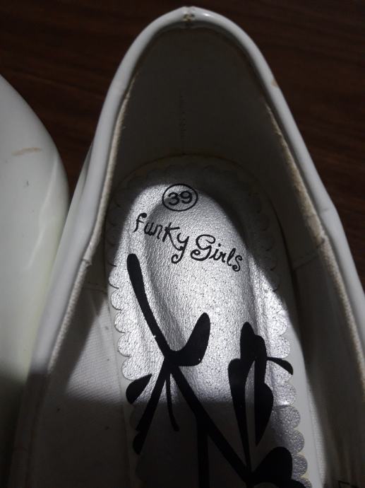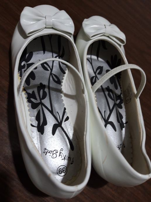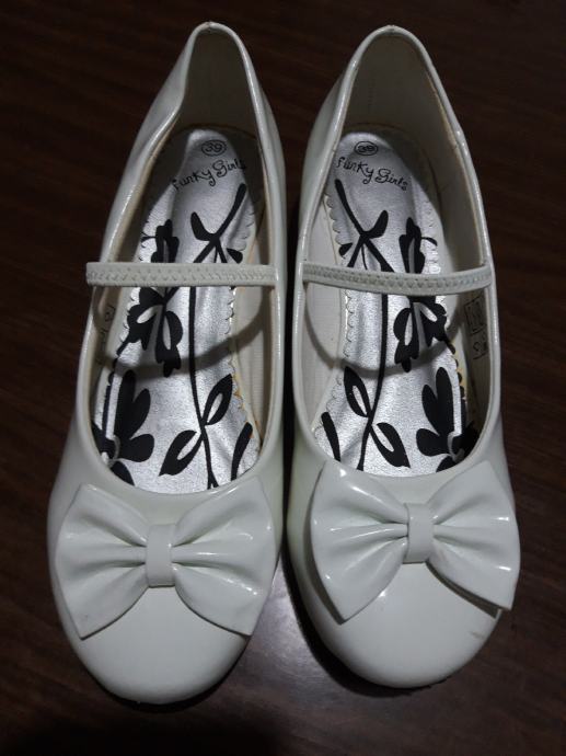 Nove, nikad nošene, bijele, lakirane balerinke, puna peta (3 cm), br.39.