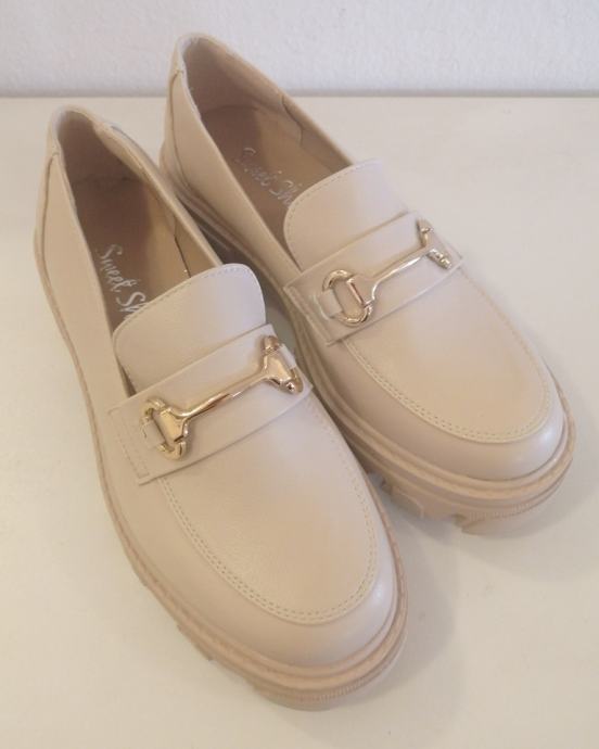 Lijepe krem boje s detaljem zlatne kopče.