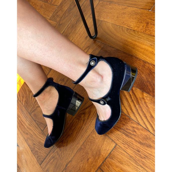 Preeeslatke Lola Cruz cipelice u stilu mary jane. Iznutra su kožne, izvana pliš. Jako lagane i udobne, odgovaraju vel 36 - boja je tamno plava. S moje strane nikad nošene jer su mi ipak premale. Napomenula bi da su spojevi rubova i pliša onako, u rangu cijene :) Imam puno obuce tog branda a i drugih, kad je pliš u pitanju,to je najcesce tako. Nisu bile jeftine no evo, zaboravila objaviti :)