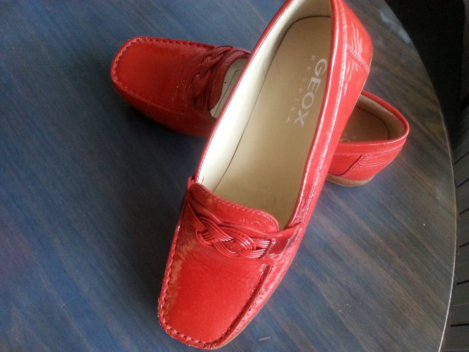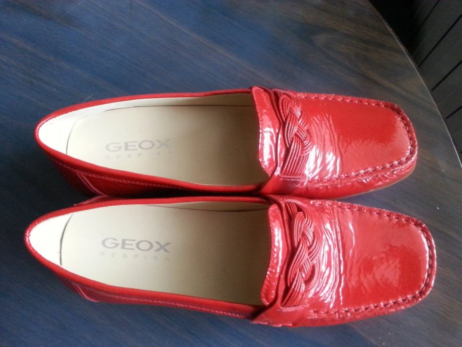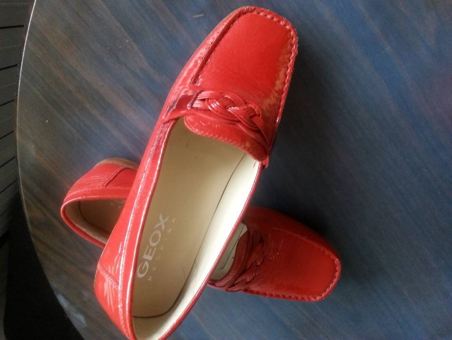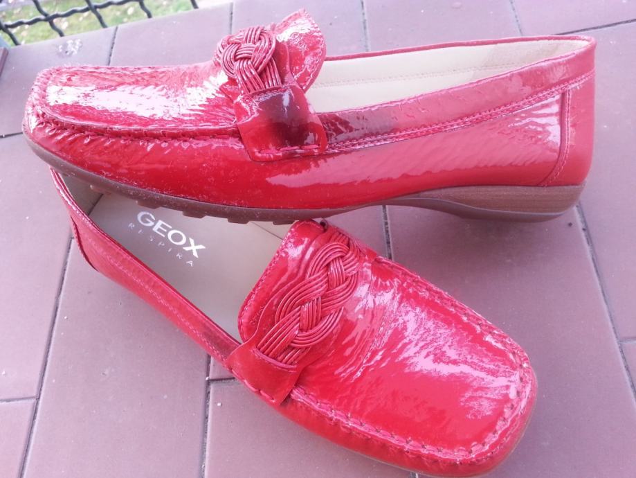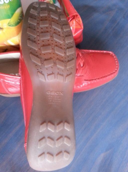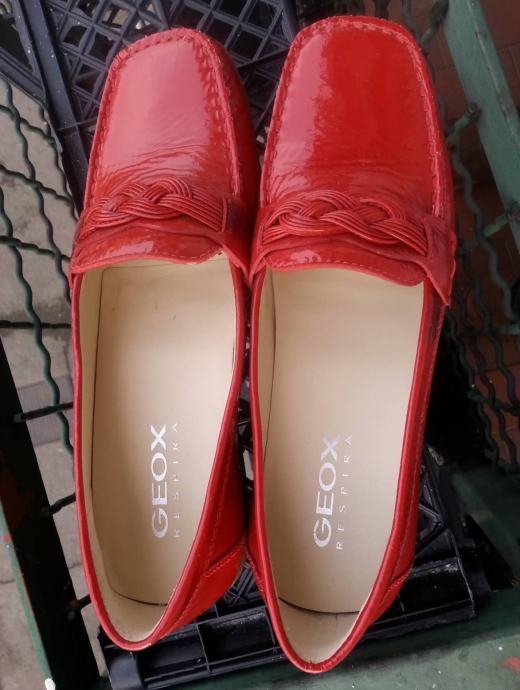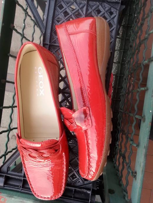 Prodaju se Geox niske cipele/mokasine, crvene, lakirane, mekane, nepoderive, kompletno načinjene od prave kože, potplat je od sirove gume.