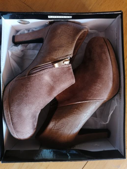 Cipele, broj 39. Boja khaki (smeđa). Obuvene par puta, očuvane kao nove izvana i iznutra. Visina pete 10 cm.
