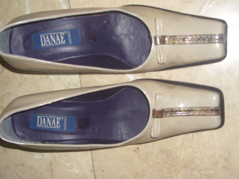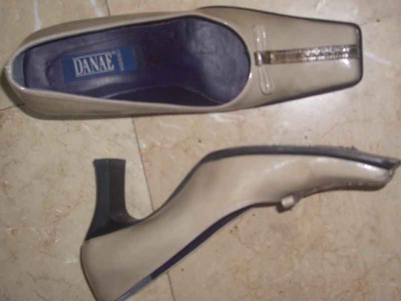 Prodajem JEDNOM NOŠENE cipele, boje pijeska, lakirane-veličina 41. Unutarnje gazište i potplat su kožni, a ostalo od umjetnih materijala. Peta je vrlo stabilna i visoka cca 4-5 cm. Jednom su nošene, ali kako nije stavljen gumeni potplat, ovaj kožni je malo pohaban.