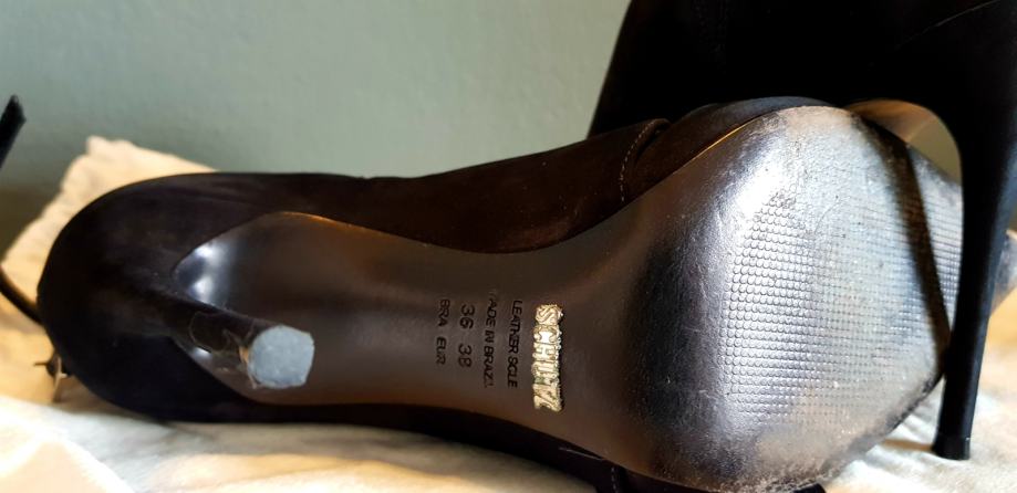 Elegantne crne Schutz stikle od prave kože, veličine 38, s visokom petom od 11 cm. Cipele su u odličnom stanju, nove bez etikete, savršene za posebne prilike.