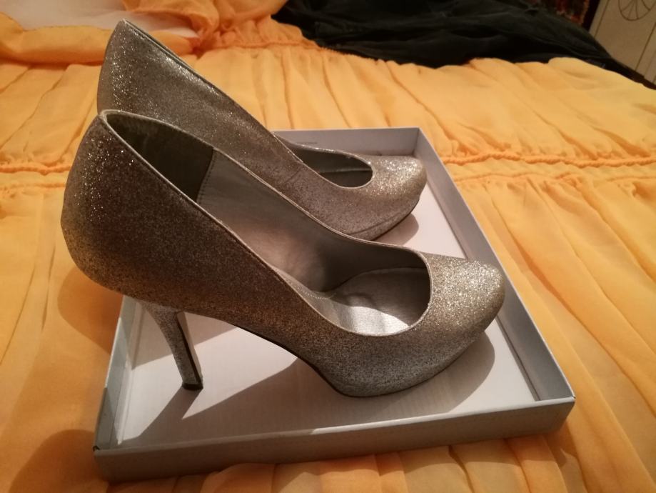 Prodajem prekrasne srebrne cipele na petu,nosene par sati na svadbi br.39..kupljene u massu.