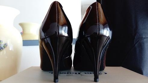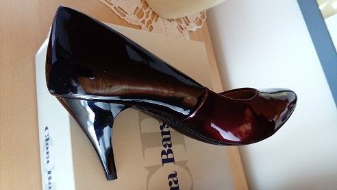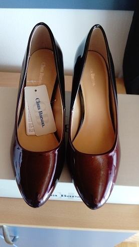 Nove, još sa etiketom. Bordo boje koje se prilijeva sa crnom. Vel.40, ali ja sam 39 (duljina stopala 25,2cm) i meni su taman. Duljina gazišta do "špice" je 25,3cm. Nisu uske, ni široke, biti će ok bez obzira na širinu stopala. Visina pete 8cm, Nisu koža.