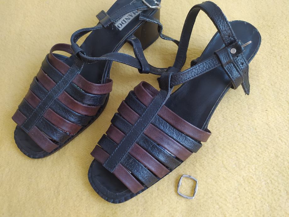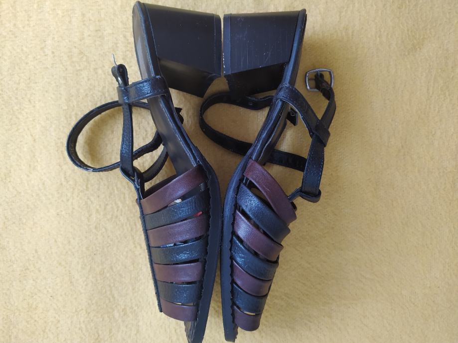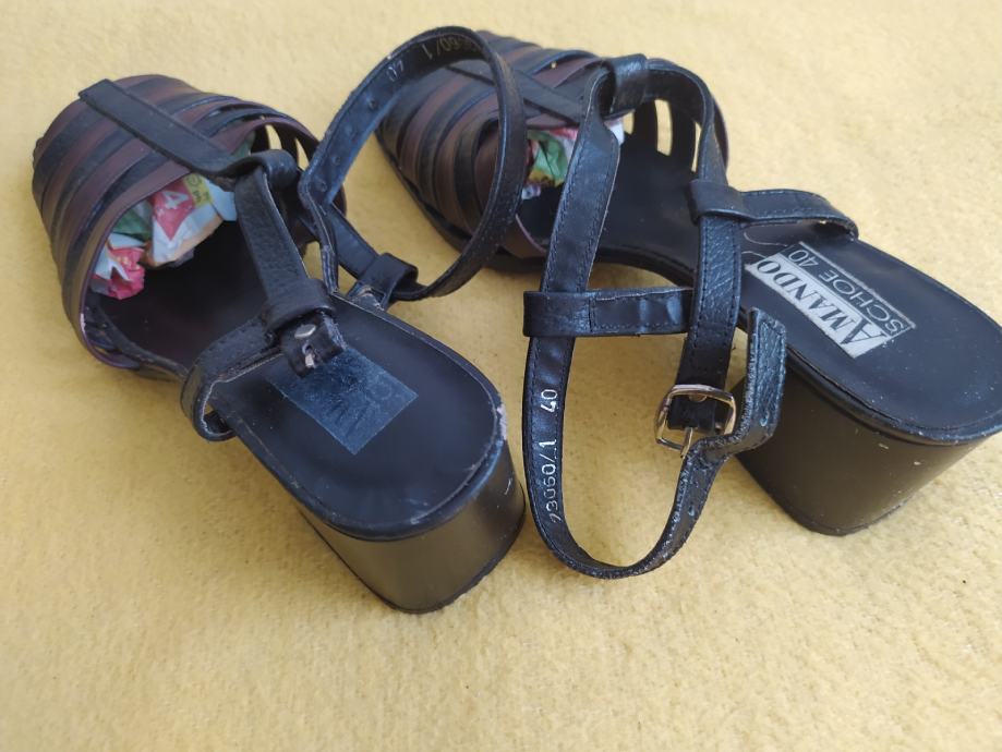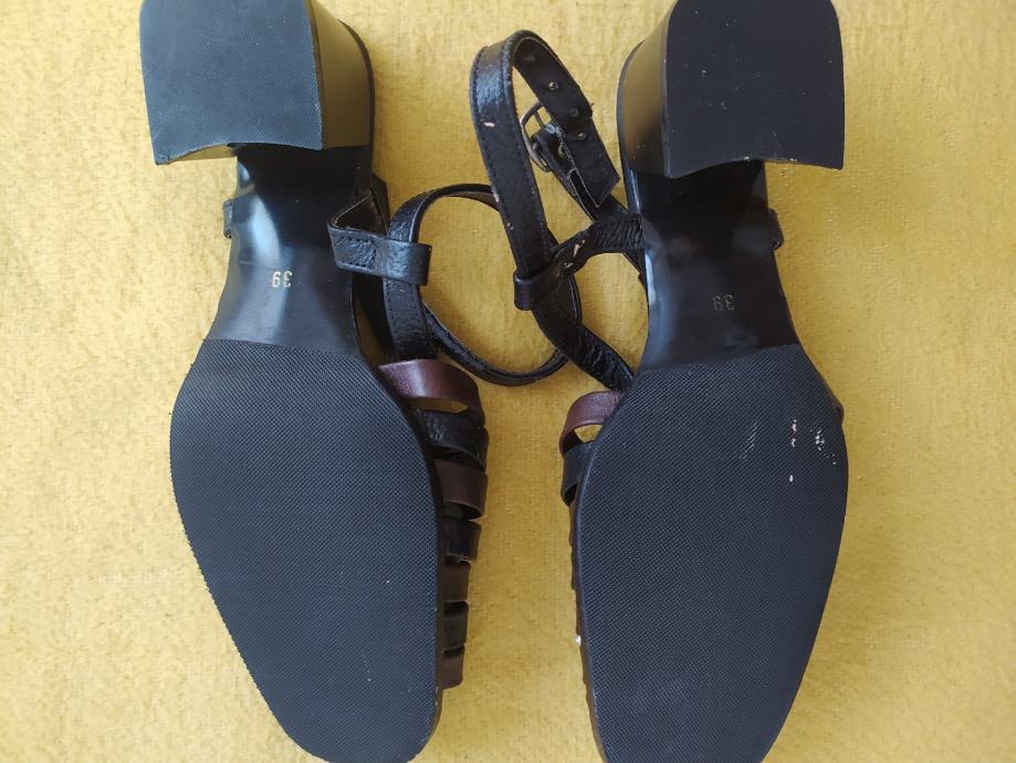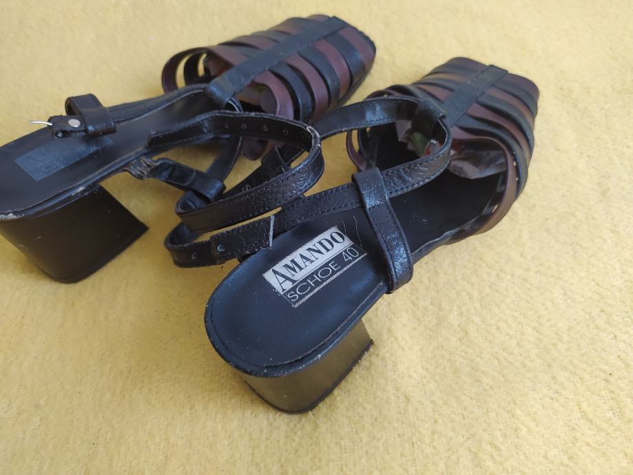 Cipele ženske "Amando" br 39 nove. Crno smeđa boja s prestepanim crnim koncem na gornjoj strani. Gornjište je od kože, unutarnji dio je koža, tabanica guma. Praktične lagane cipele za jesen/proljeće, za grad, šetnju, posao, svaki dan,... Nove nikada nošene. Kopča se potrgala na lijevoj sandali.