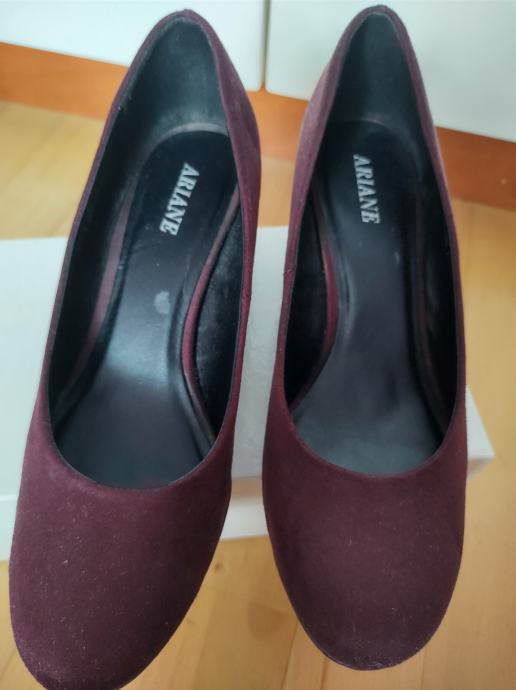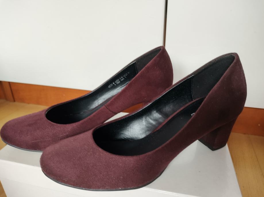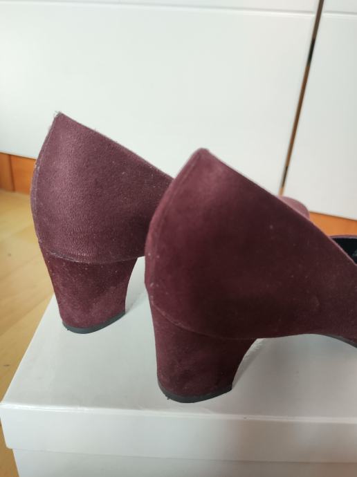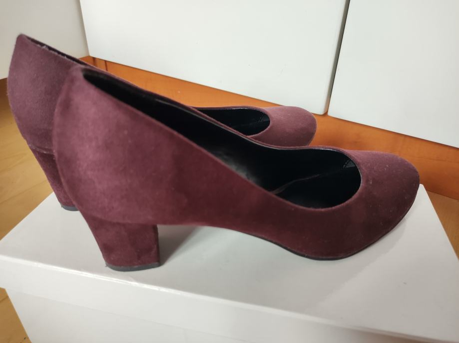 Ženske cipele, salonke na peticu 6cm. Bordo, plišaste. Klasičan model. Gazište 25. Dva puta nošene (male su mi).