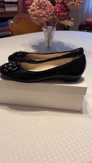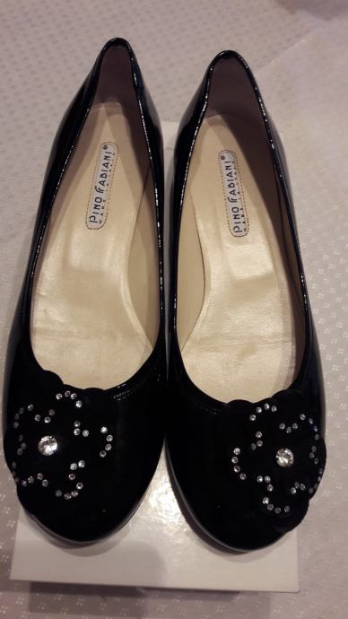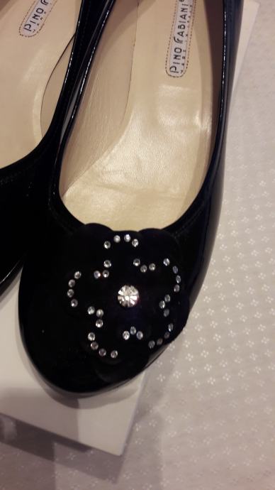 Prekrasne crne cipele talijanska kvaliteta i dizajn, par puta nošene, zatvorene, prava lak koža, 38,5 veličina , 1,5cm peta.