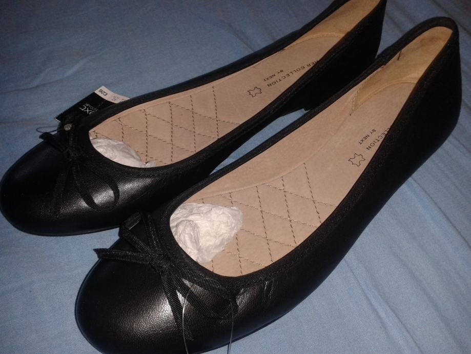 Nove prekrasne crne balerinke od prave koze broj 42(ali su uk8 tako prije mislim da bi prije ogovarale za broj 41), za svaku prigodu, unutranja mjera oko 27cm a vanjska oko 28cm, marka Next, nikad nosene, na njima jos original etiketa sa cijenom (26 funti)