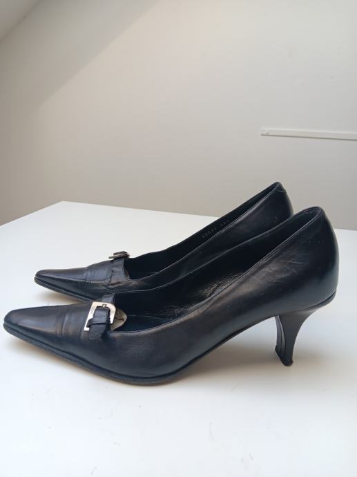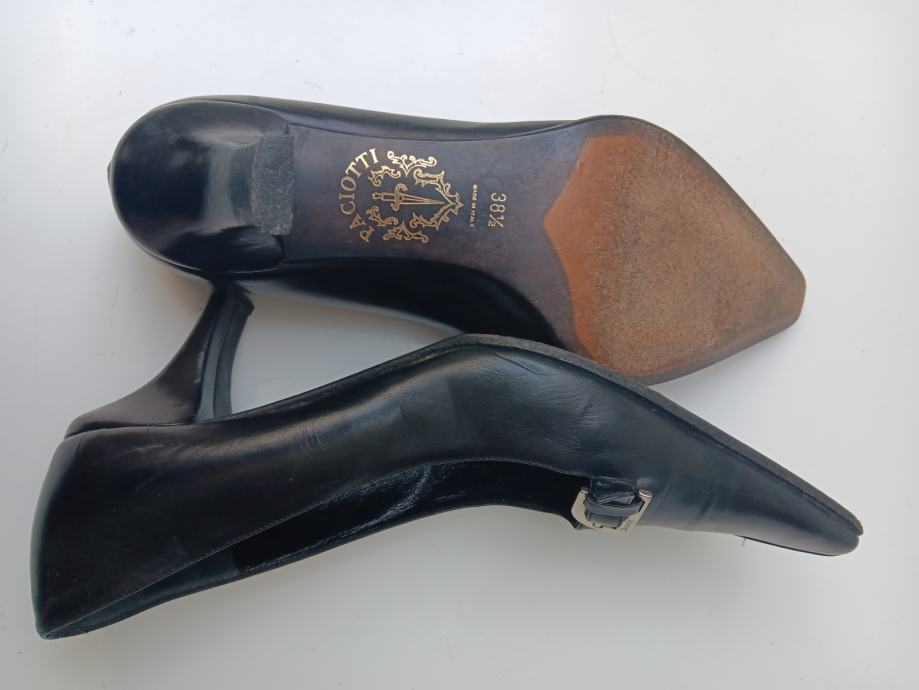 Crne kožne cipele Cesare Paciotti 38 1/2 dizajnerske što se odmsh osjeti pri nošenju od kvalitete kože do udobnosti gazišta i vrsno postavljenoj peti da vas noge ne bole pri duljem nošenju. Iz tih razloga dizajnerske cipele jakoooo puno koštaju ali vrijede svakog centa, jedino ih treba servisirati potplate i mogu trajati desetljeće i više, ovaj par traži novu vlasnicu koja zna prepoznati kvalitetu