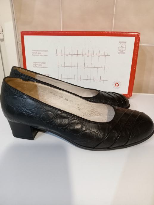 Elegantne crne kožne cipele Peko, veličine 38, s petom visine 4 cm u rabljenom stanju. Zahvaljujući kvalitetnom kožnom materijalu, udobne su i dugotrajne.