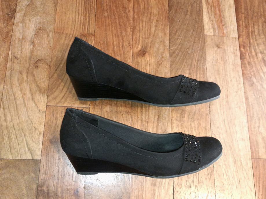 peta je ugodnih 4cm (taman toliko da elegantno podignu a nisu naporne za hod). Imaju kamenčiće sprijeda, i svi su na broju.