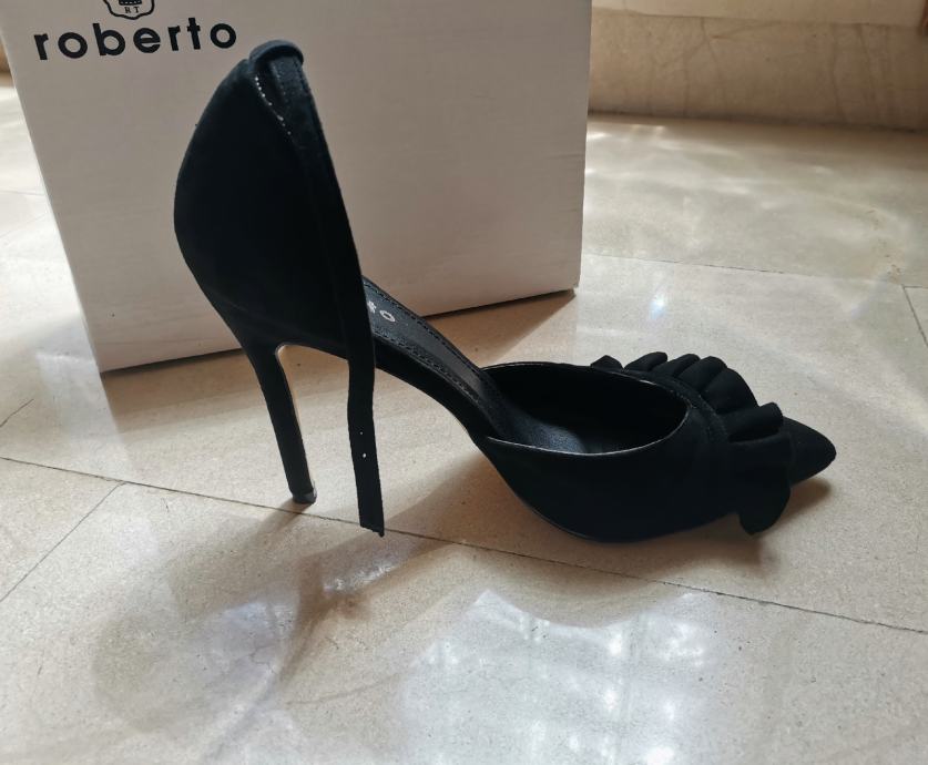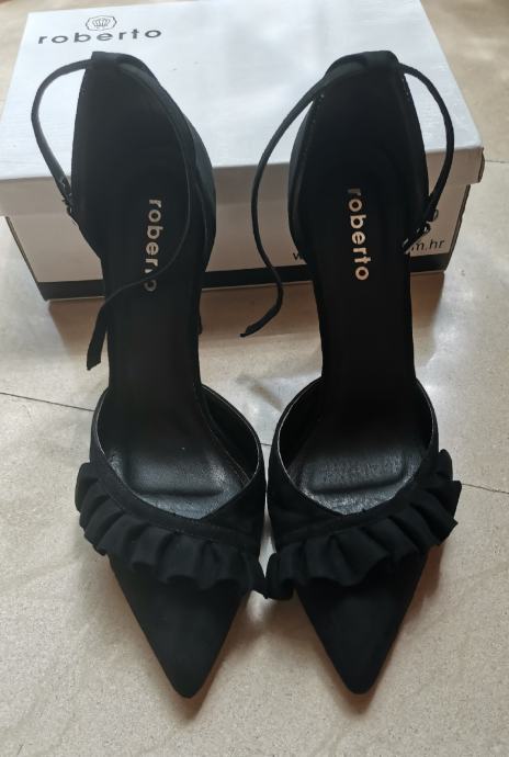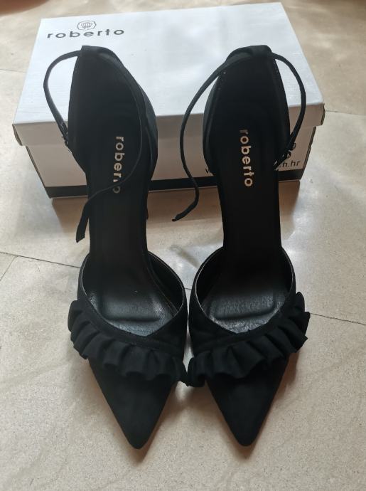 Crne štikle kupljene u Robertu, br 41, peta 11cm, gazište 27cm, odlično očuvane. Slanje Tiskom nakon uplate